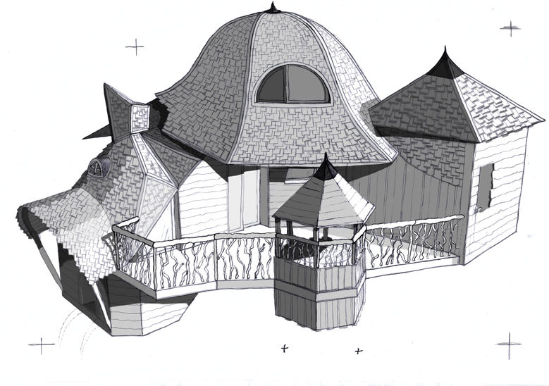 Le tout devait prendre en compte des jeux de bardages bois, d'habillages et de constructions bois jouant sur les différentes matérialités en fonction de l'usage des pièces, ainsi que des toitures en bardeaux de bois incluant des fenêtres de formes différentes, en saillies ou en forme d'œil (chambre en mezzanine).